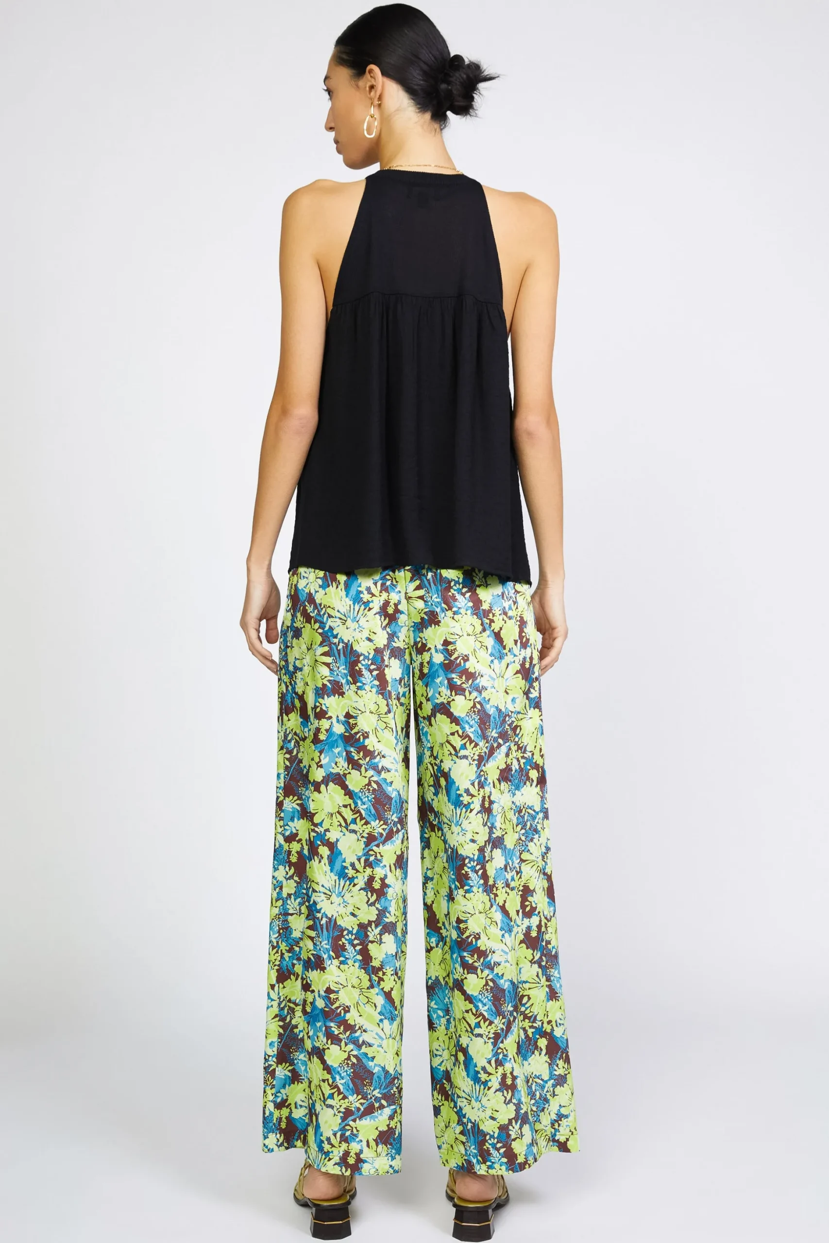 This summery halter top has a ribbed neckline, crocheted yoke, and pretty gathers that enhance the loose-fitting silhouette. An effortless piece to pair with your favorite denim, wide-leg trousers, or tailored shorts when the temperatures start climbing.