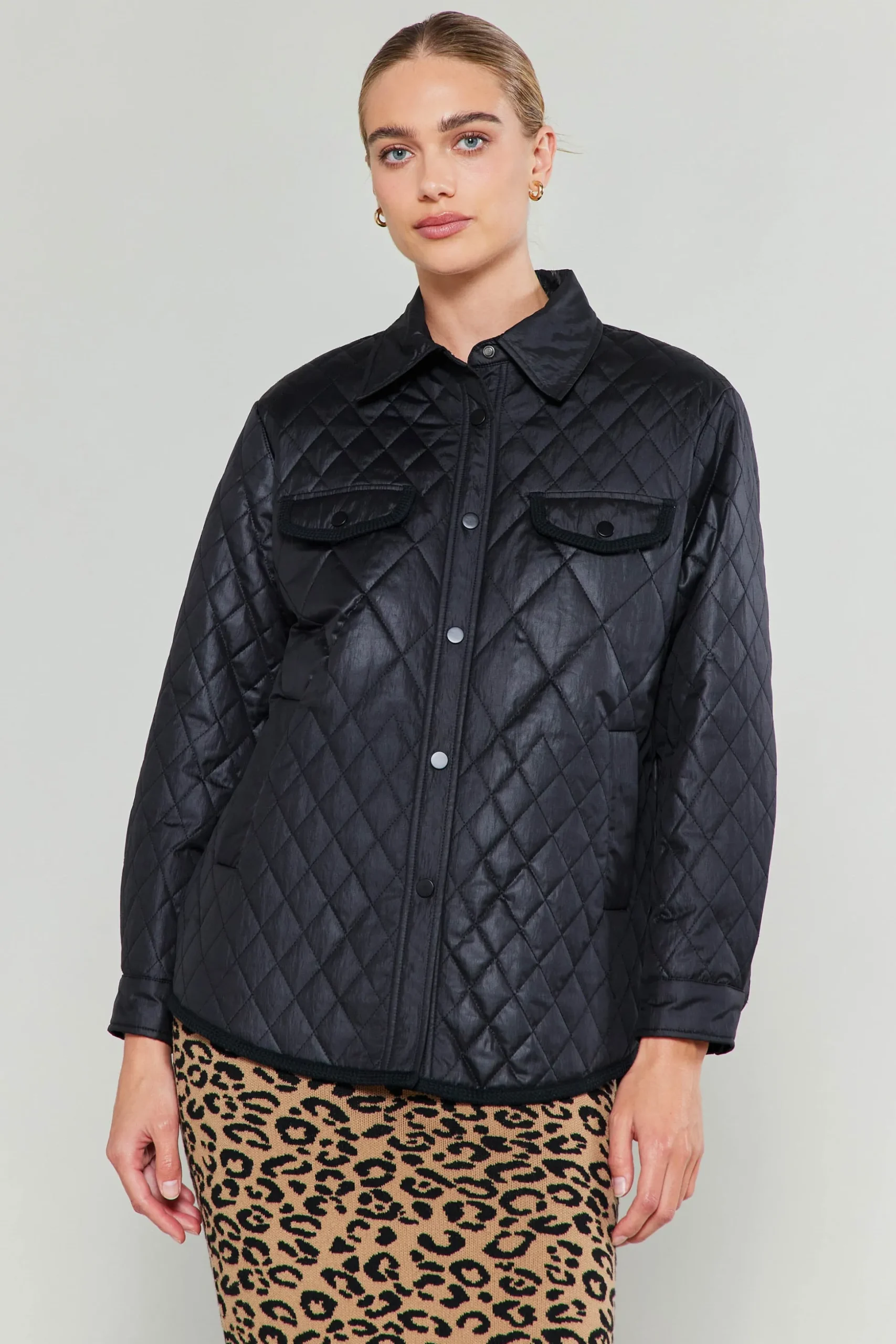 This jacket with diamond-shaped quilting is a cool-weather essential you’ll reach for repeatedly. Done in a versatile taupe shade, the long-sleeve layer has a spread collar, a flap pocket at the chest, and a welt pocket on the side for handy stashing. •Spread collar