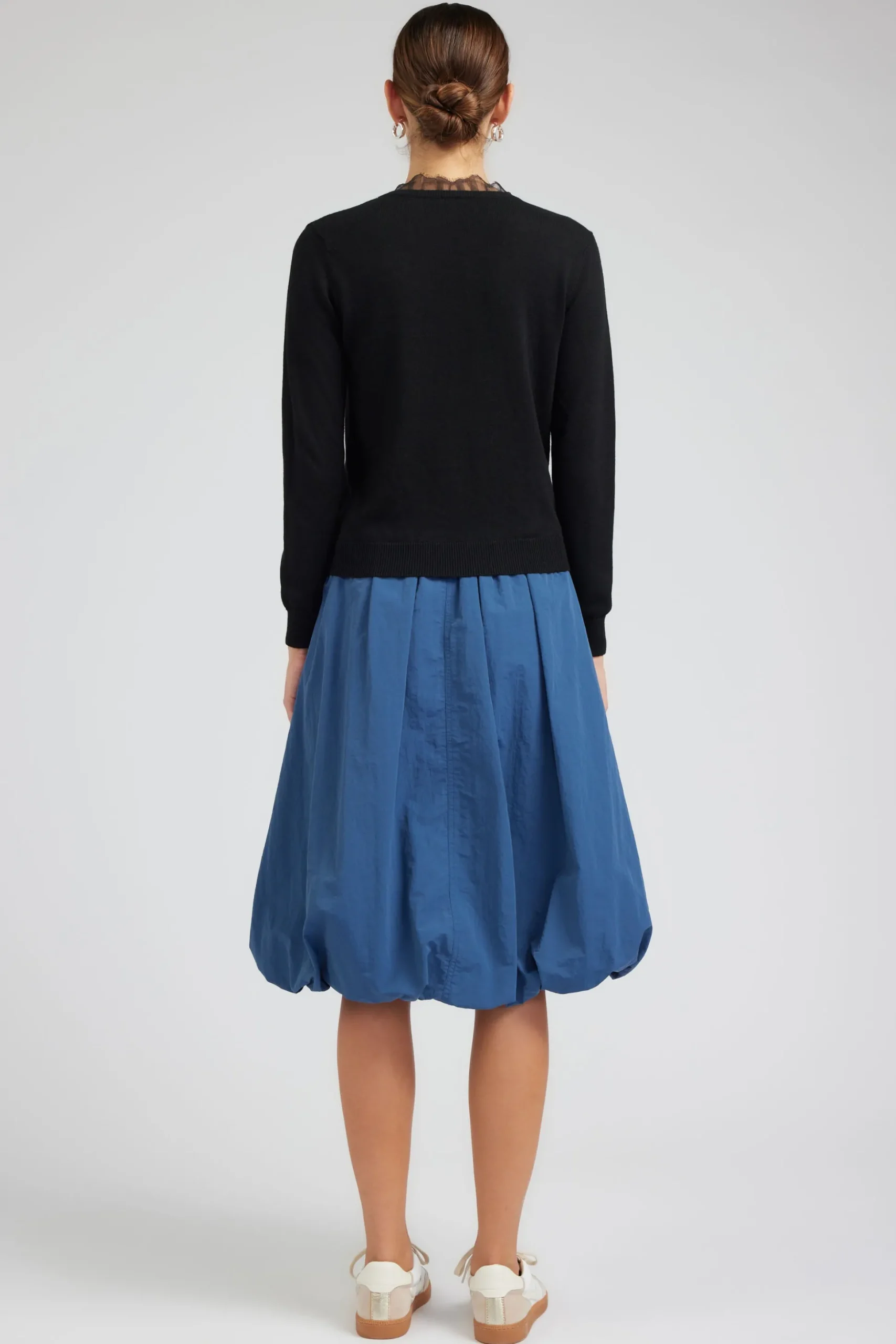 A classic long-sleeve sweater with a little something special. Done in a fine-gauge knit, it’s defined by a V-shaped neckline and accented by delicate eyelash lace.