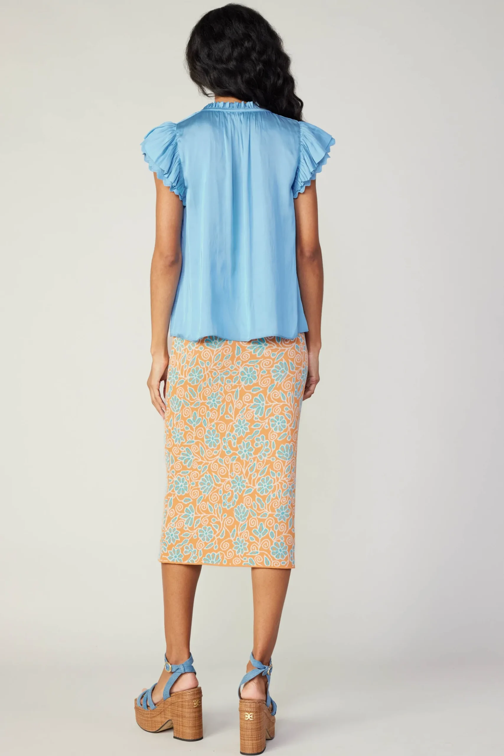 Detail upon detail. Double-layered short sleeves accent this split-neck top—check out the texture contrast of fluttery raw-edged pleats and eyelet-detailed scallops. This lightweight number has a relaxed, easy fit that’s finished with ruffle trim and a dainty tie at the front.