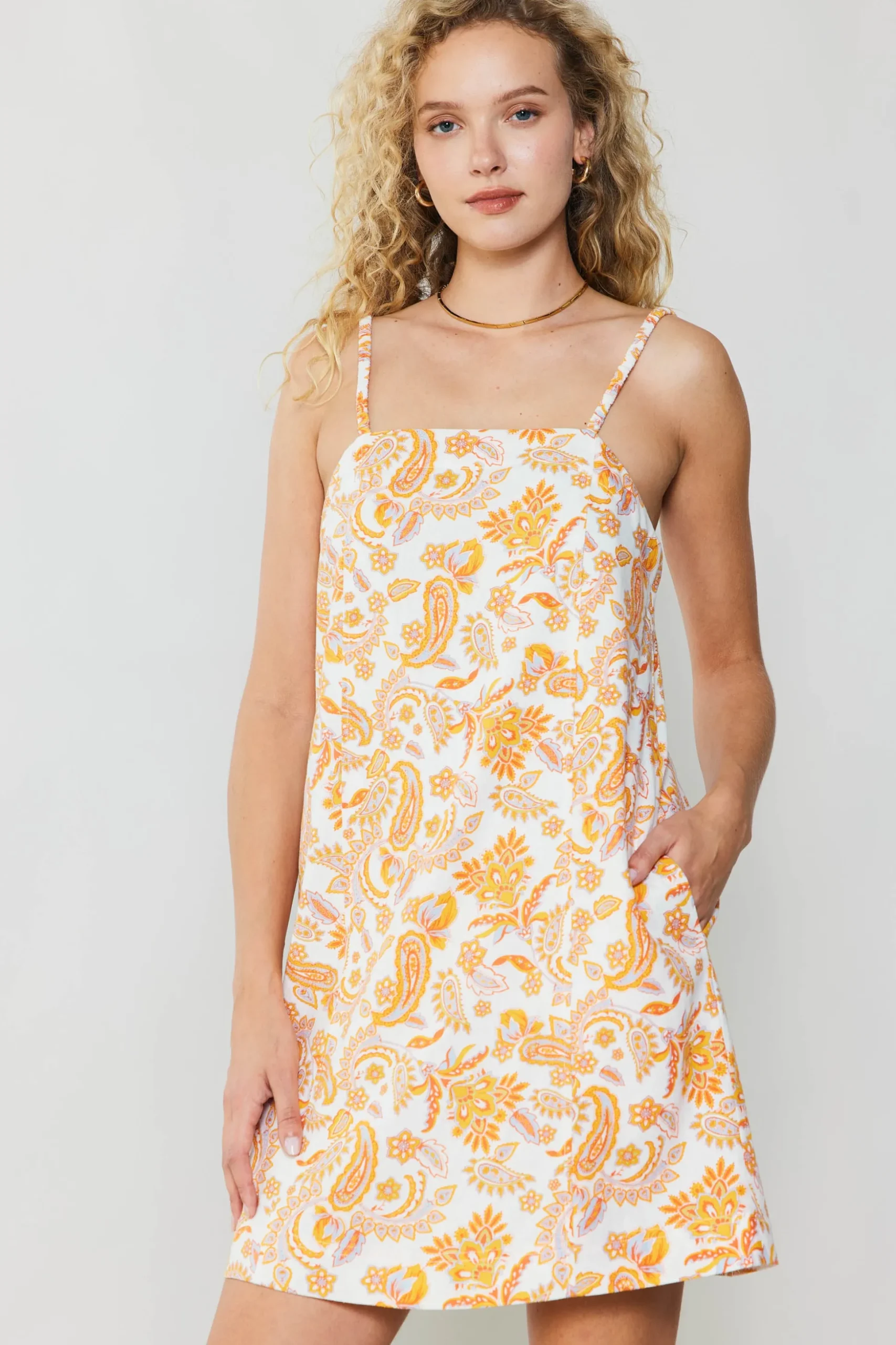 This paisley-print mini dress isn’t just pretty—it’s also super easy to wear with its adjustable straps.