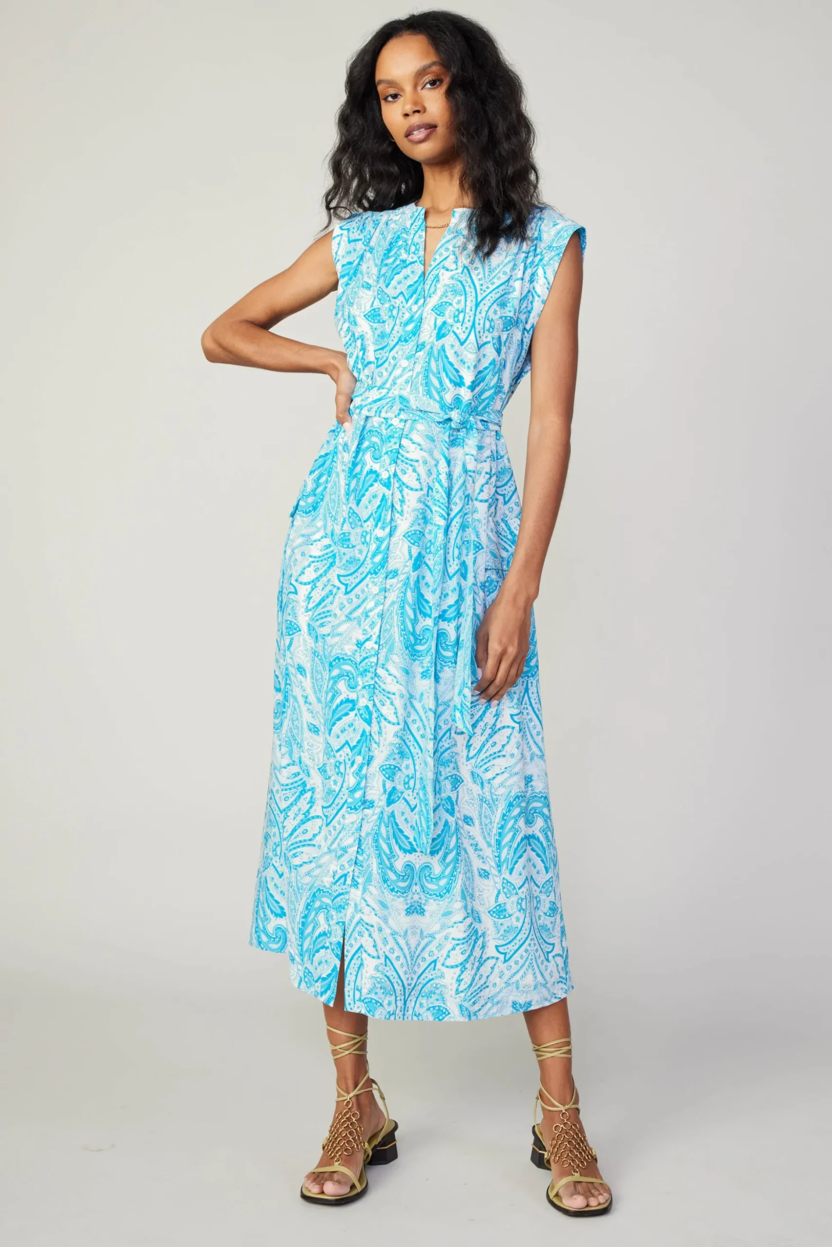This sleeveless dress will take you from the beach to city block without missing a beat. The shin-grazing style has a loose, straight fit and features a split neckline, buttons down the front, and cargo pockets at the sides. Accented by soft gathers, it’s finished with a self-tie belt to draw in the shape just the way you want.