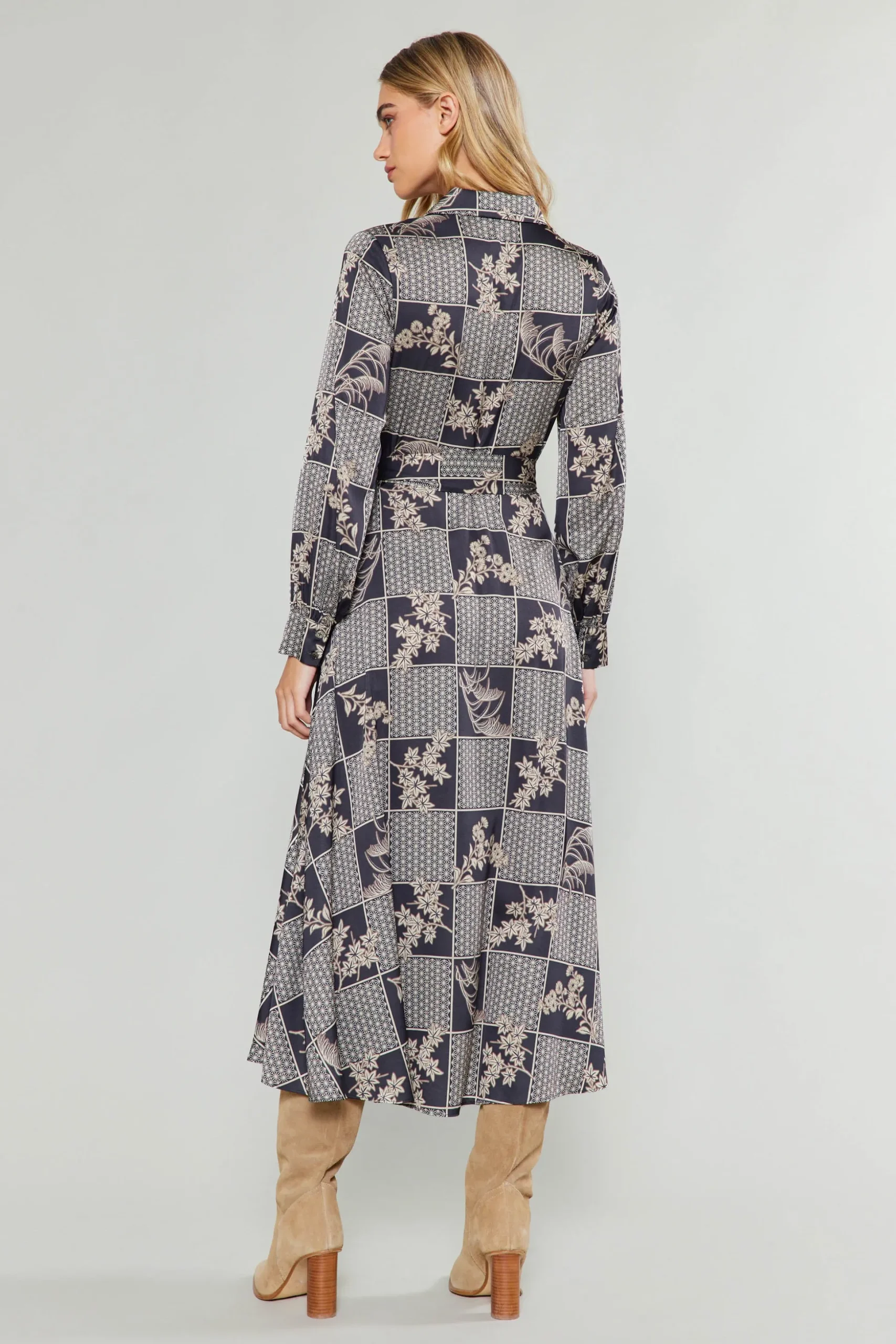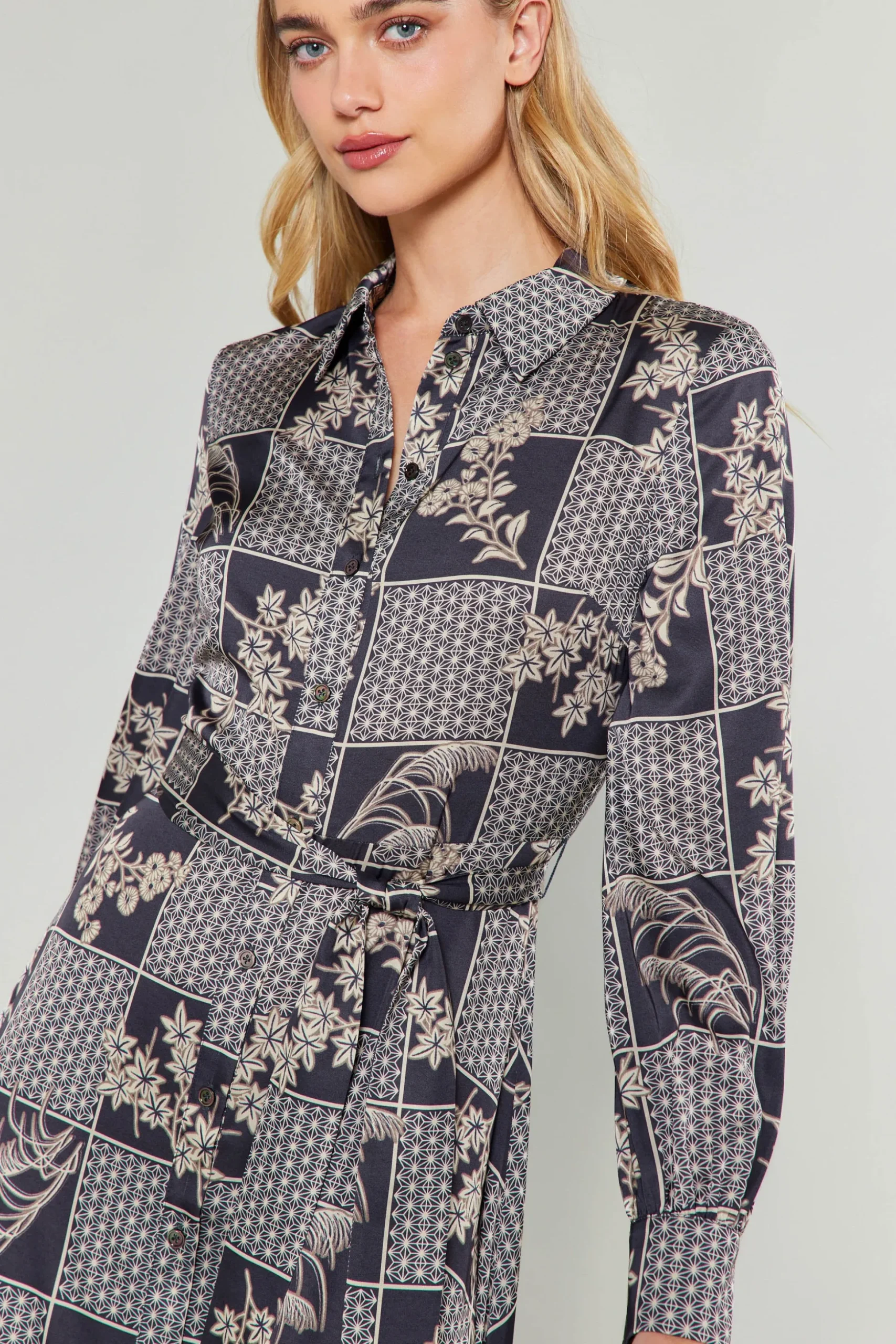 A floral-infused checker motif adds to the charm of this shirt dress. Wear it buttoned all the way up for a polished look, or leave it undone to convey a casual vibe. The tie belt is optional, so you can draw in the waist or let it flow. Finally, the ultra-plush and silky feel of the fabric provides true comfort and everyday luxury.