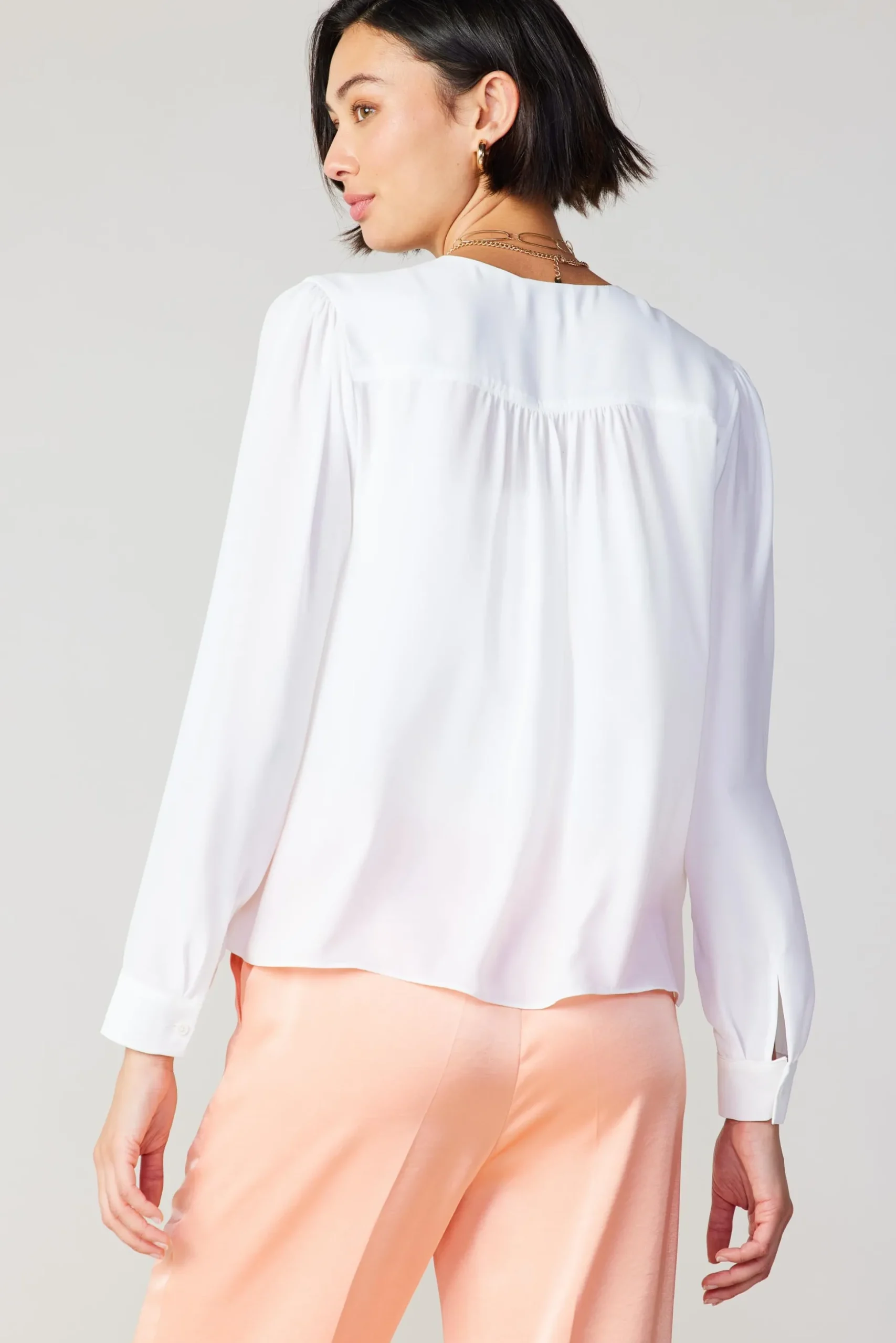 Our airy V-neck shirt has an effortless look, but the pleating down the center. This long-sleeve style is easy to dress up or down—pair it with jeans or something more tailored and polished.