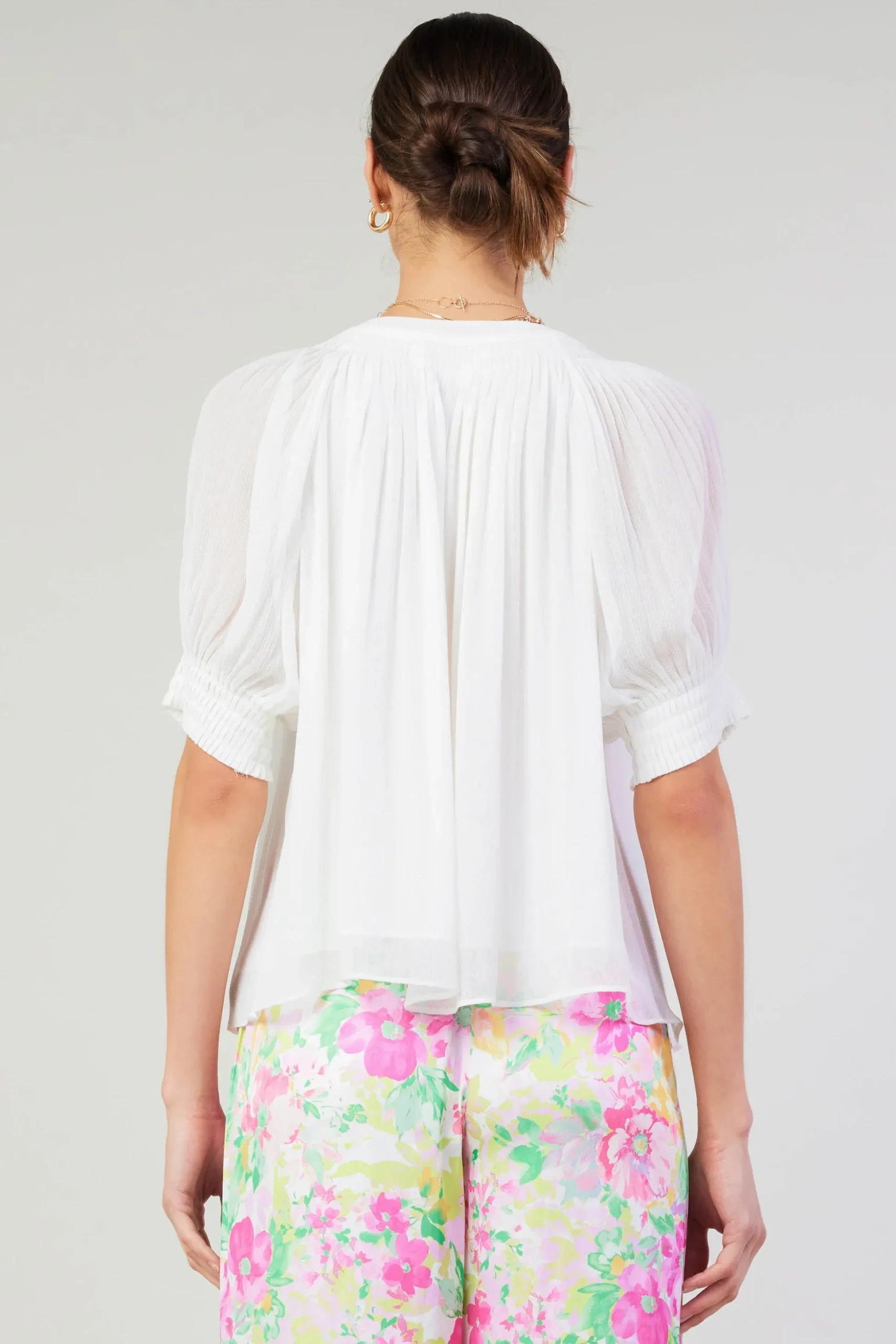 •Pleating at neckline and cuffs