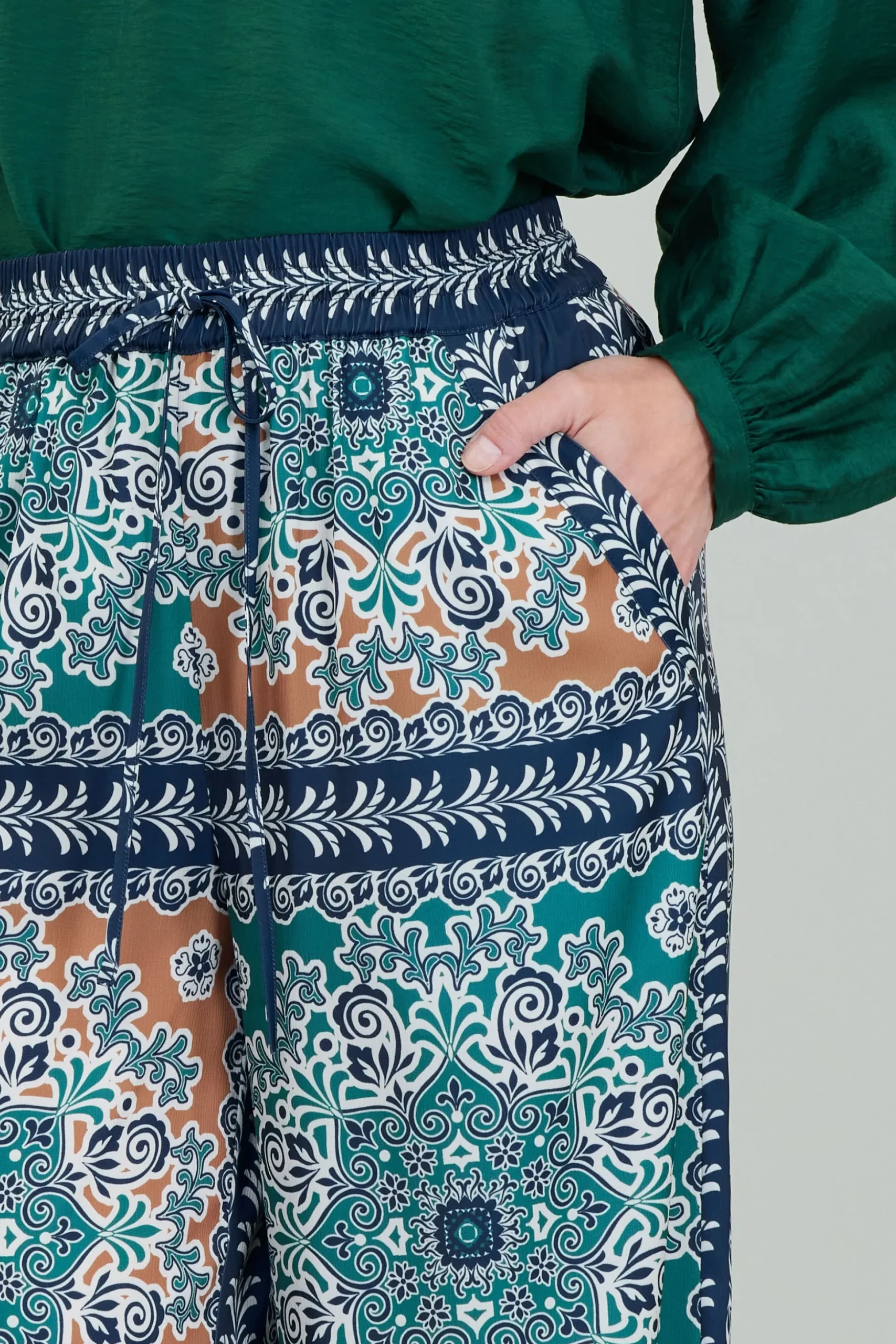 Designed with a comfortable waistband and a relaxed silhouette, these wide-leg pants are the perfect getaway staple. Offering the comfort of slinky pajamas but elevated by an ornate print, they’re easy to wear and effortlessly stylish.