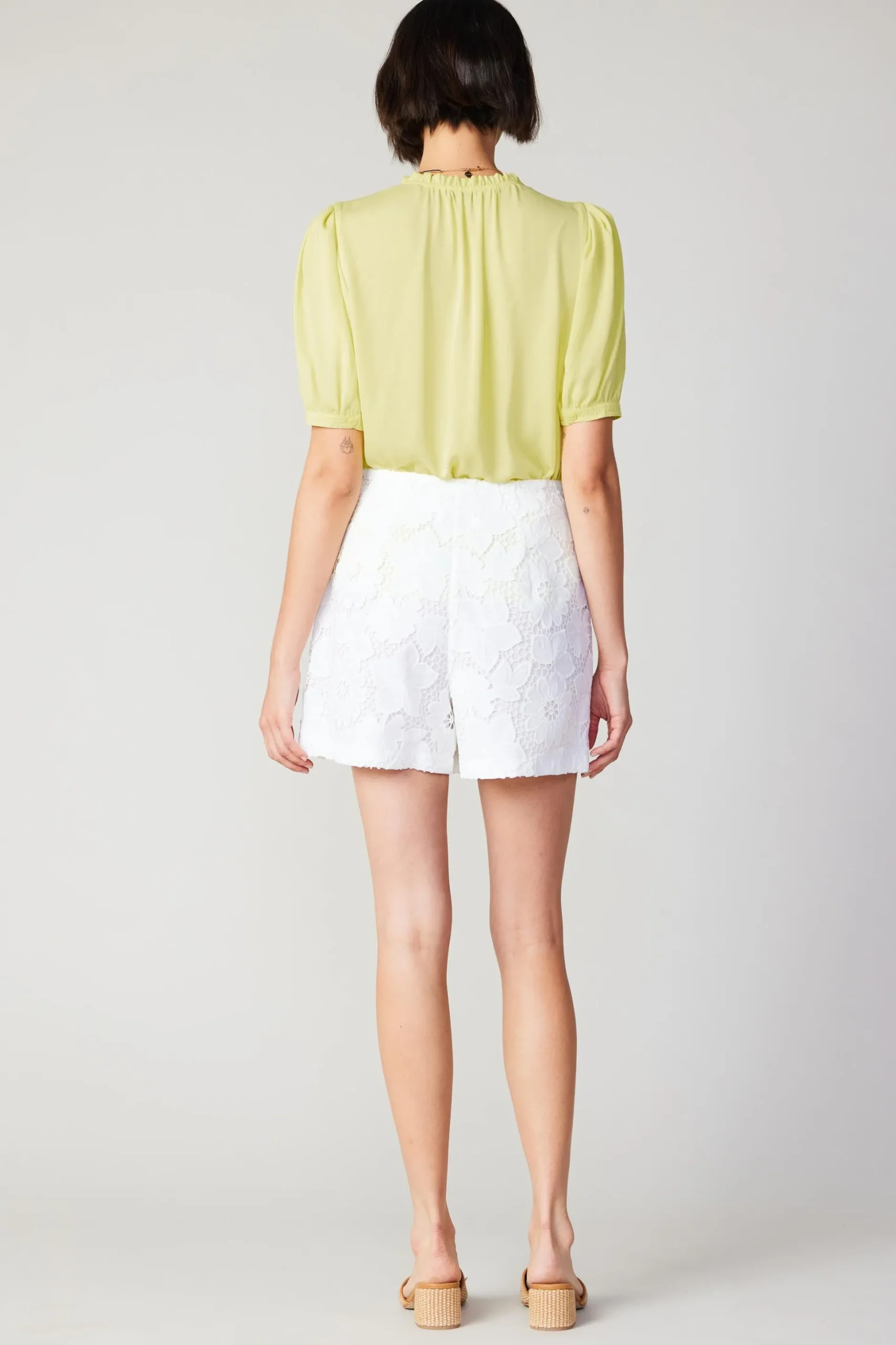 These white lace shorts adorned with floral patterns is our feminine take on a classic style. Pair it with any colorful top or our matching lace blouse.