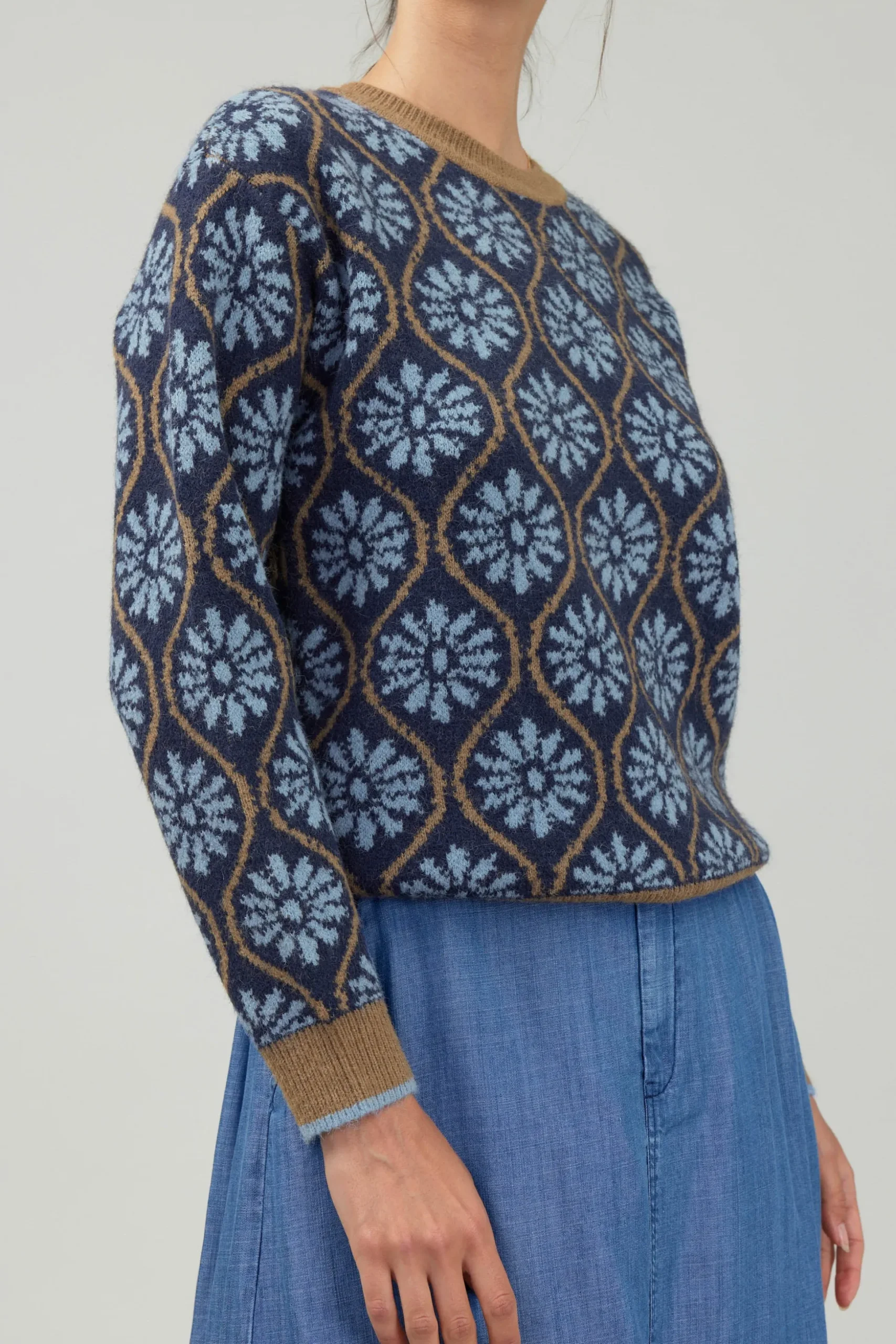If you’re over neutral shades this season, maybe it’s time to punch up your look with something new. Like the green shade of this cuddl pullover sweater. The color couldn’t be more attention grabbing, and the unique pattern is an eye catcher.