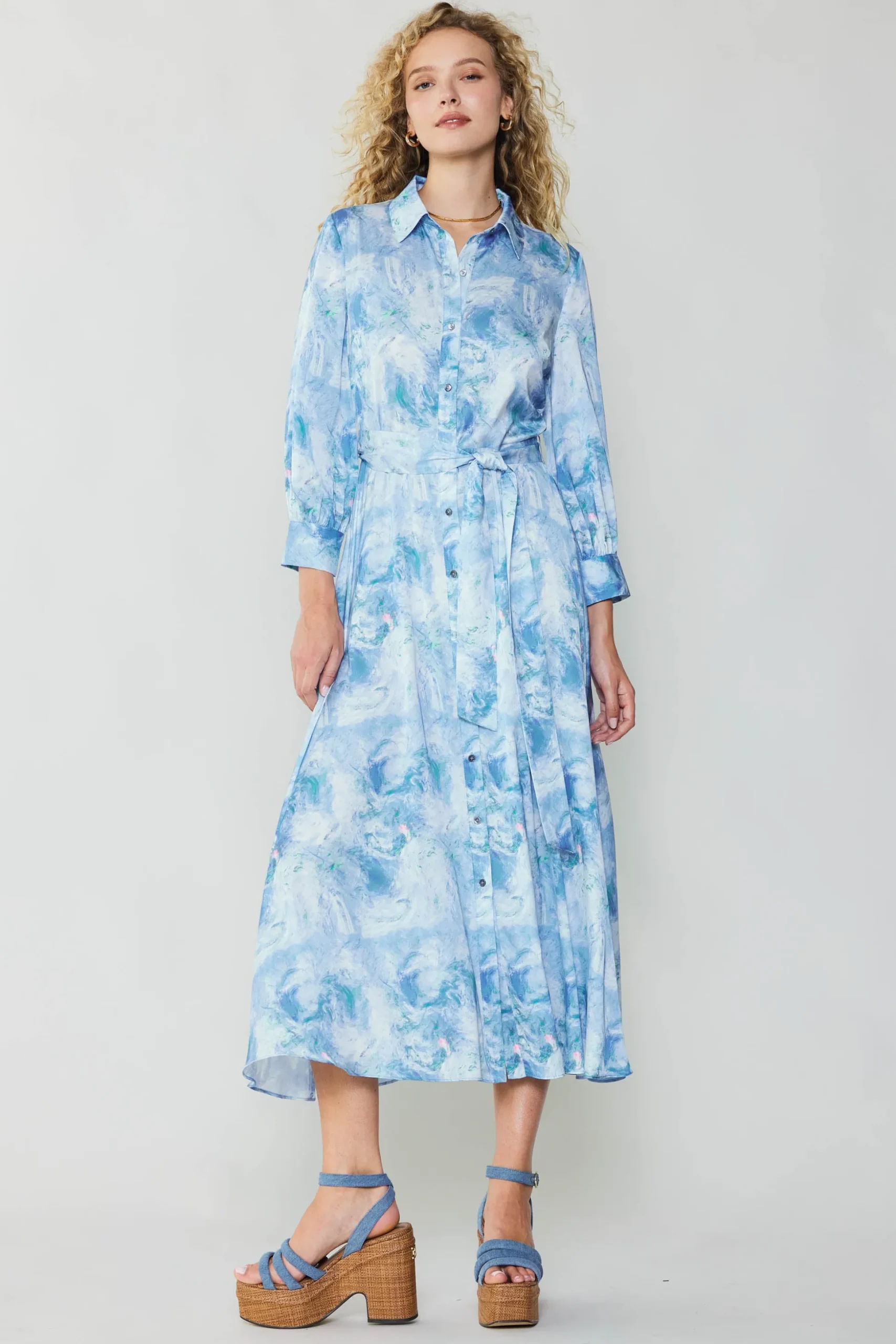 With its swirling marbleized print, this shirt dress is guaranteed to captivate. Wear it buttoned all the way up for a refined look, or leave it undone to channel a more relaxed vibe. The tie belt is optional, so you can cinch the waist or let it flow. Finally the ultra plush and silky feel of the fabric provides true comfort and everyday luxury.