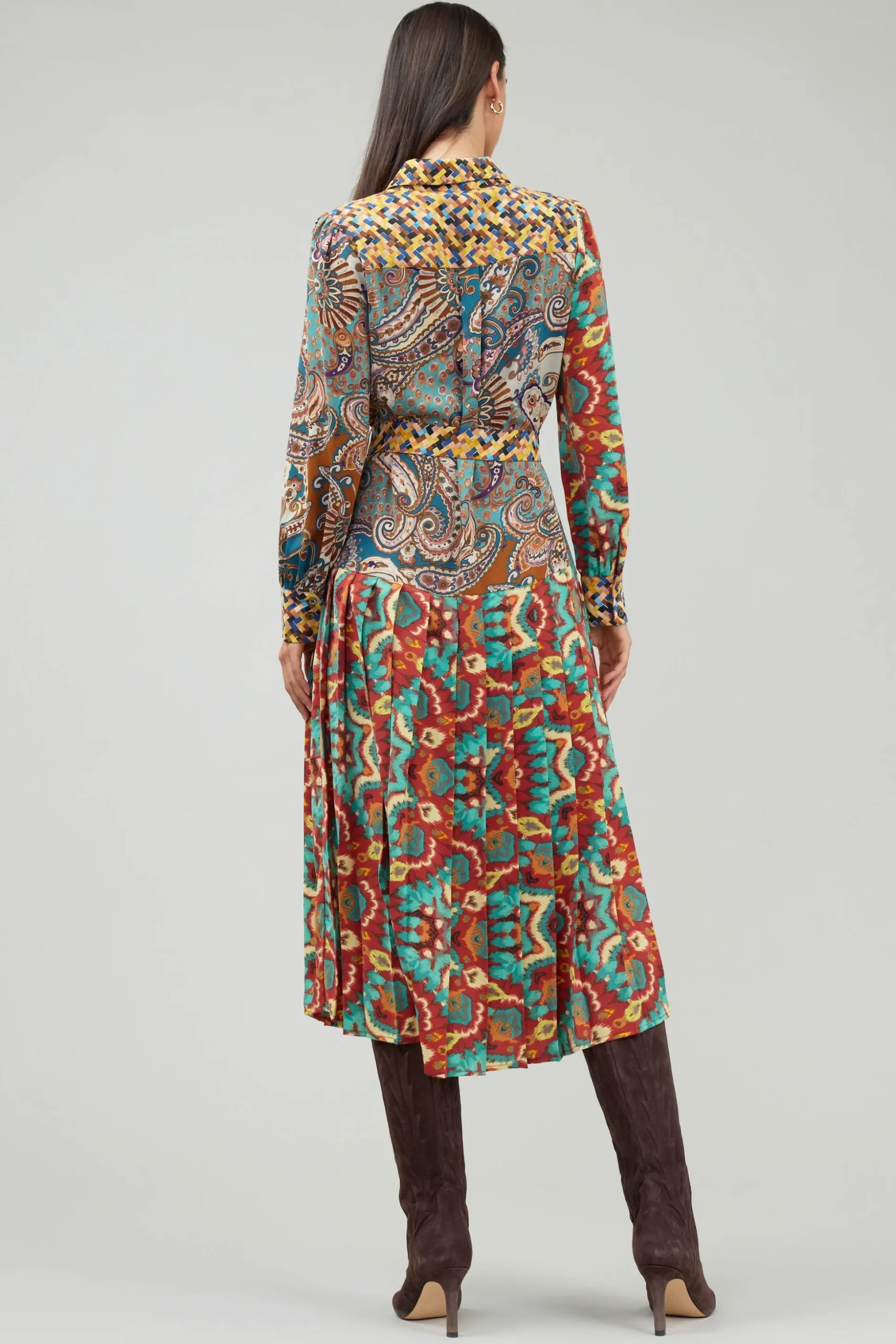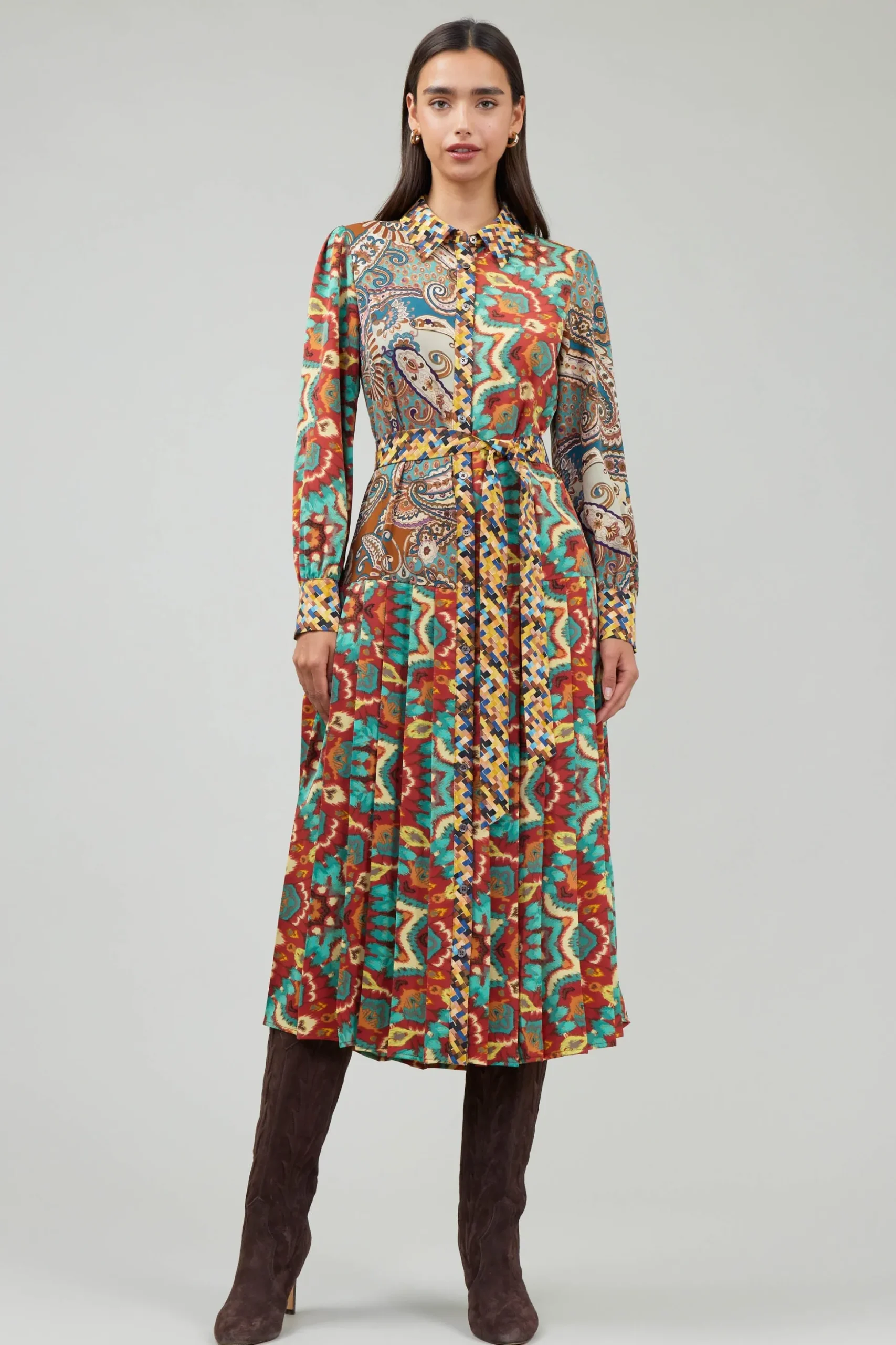 A fresh update on the classic shirt dress. This button-up number features long sleeves, box-pleat detailing at the skirt, and a matching belt to define the waist.