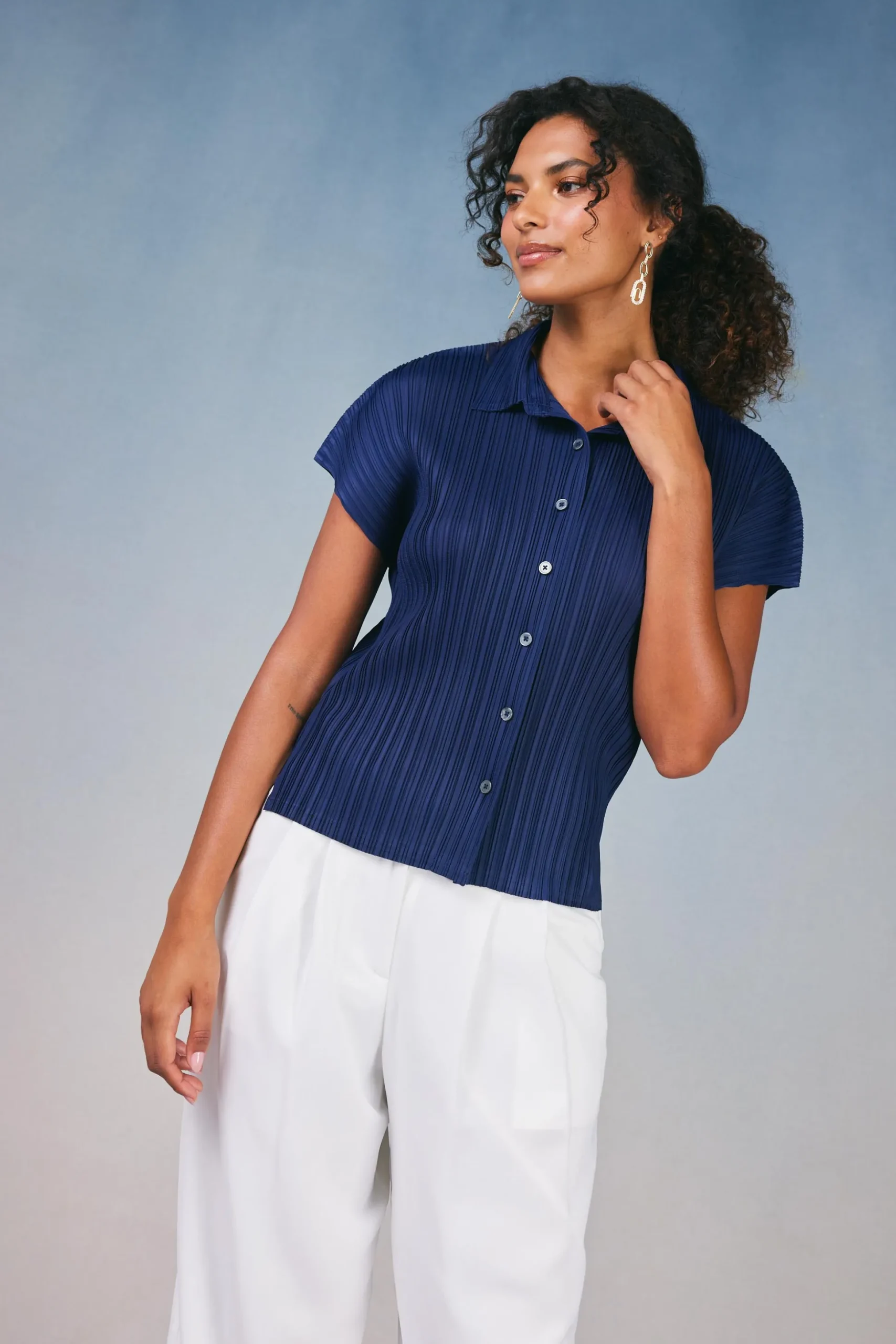 This top feels completely lounge able, but the pleated style is polished enough to wear to work. A versatile chic option for any occasion.