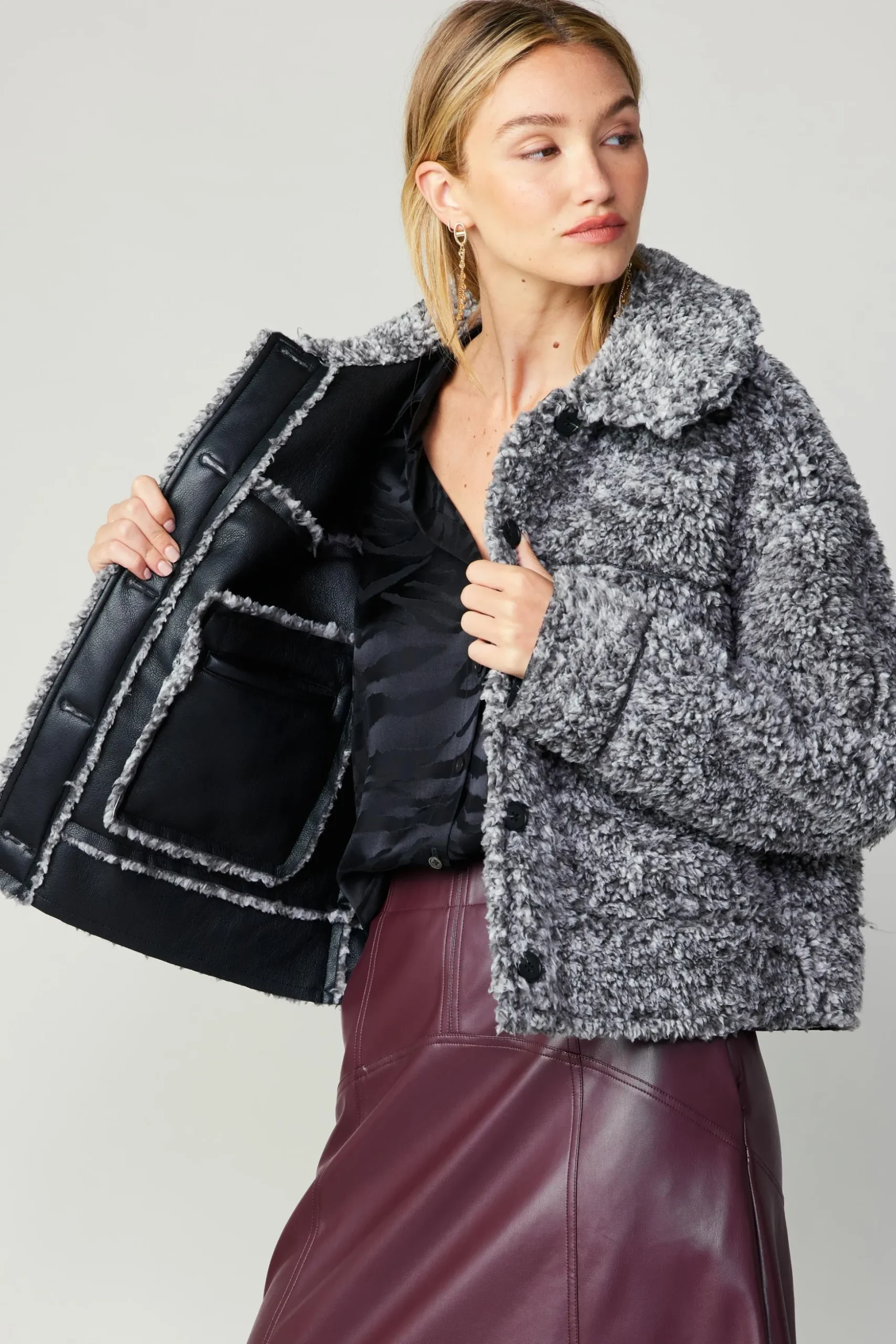 This reversible vegan leather & fur jacket is like having two jackets in one. Smooth on one side and plush on the other, it’s an effortless way to switch up your autumnal ensembles.