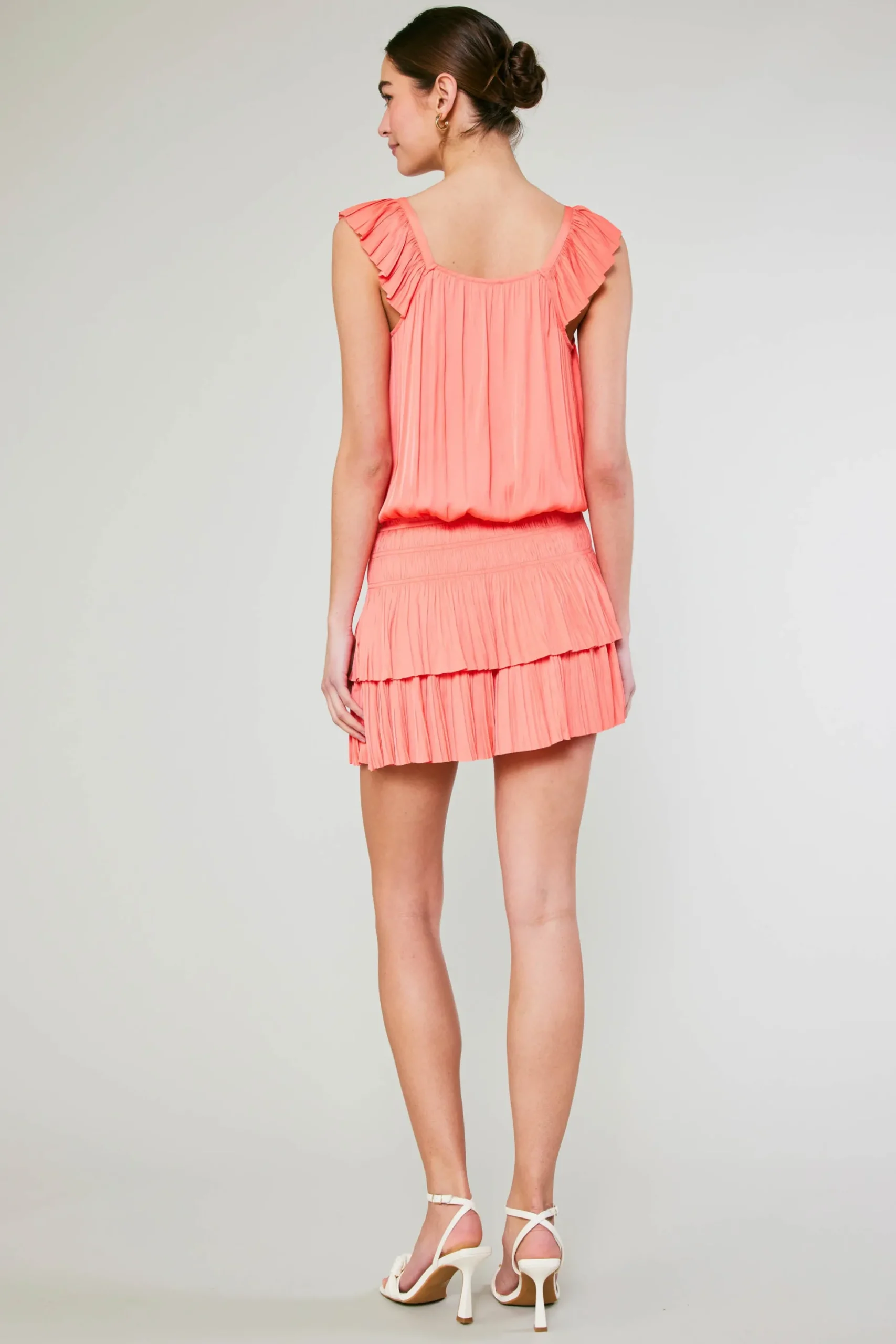 Fluttery, pleated, pretty much perfect. This sweetheart neck mini dress is one you’ll turn to repeatedly. A swingy skirt give it lots of movement, while the smocked waist flatters the shape.