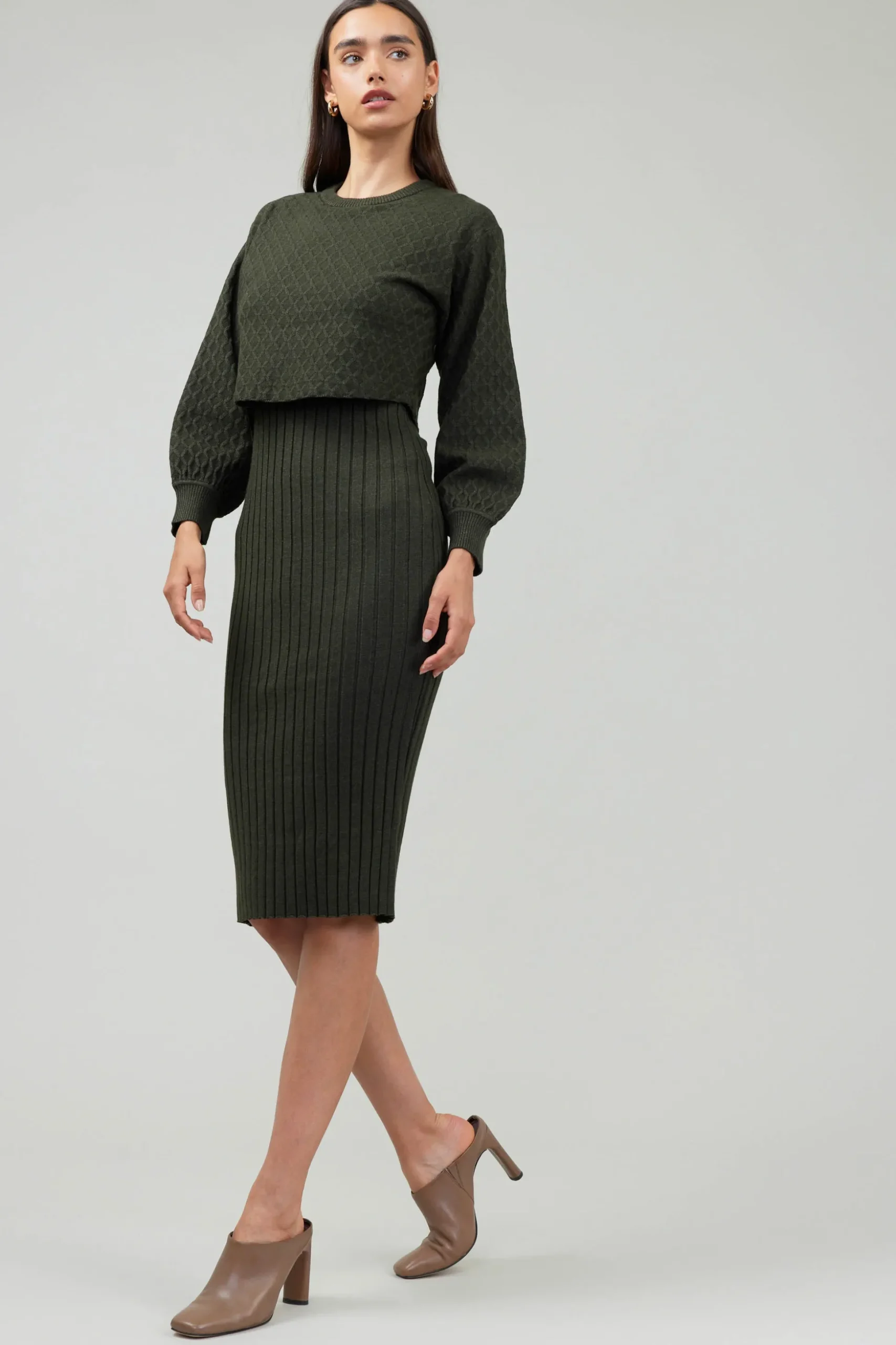 This sweater dress feels cozy and looks pulled together. Knitted for a mid-length silhouette in a ribbed design, the long-sleeve style has a round neckline, long sleeves, and a shin-skimming hem, it’s drawn in by separation at the waist, creating a flattering shape.